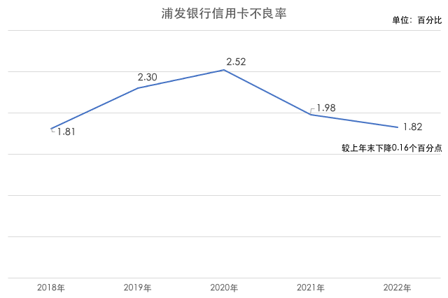 截止报告期末,浦发银行信用卡不良贷款78.88亿元,不良率1.82%,较上年末下降0.16个百分点;