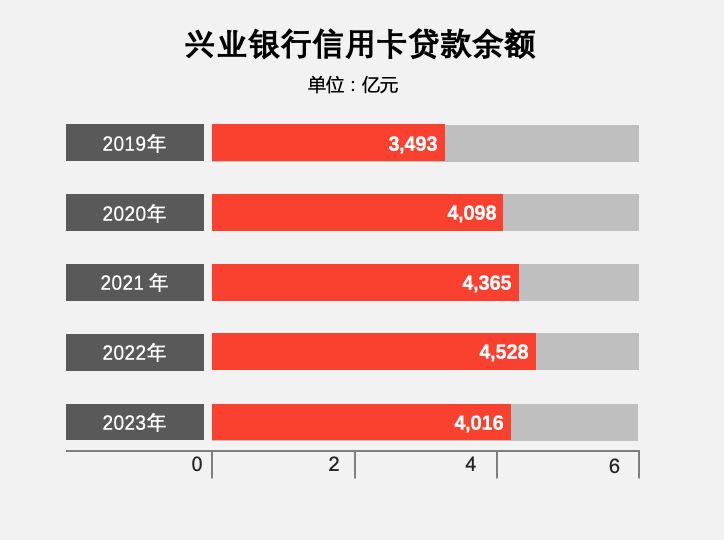 截至2023年末,兴业银行信用卡贷款余额 4,016.33 亿元;