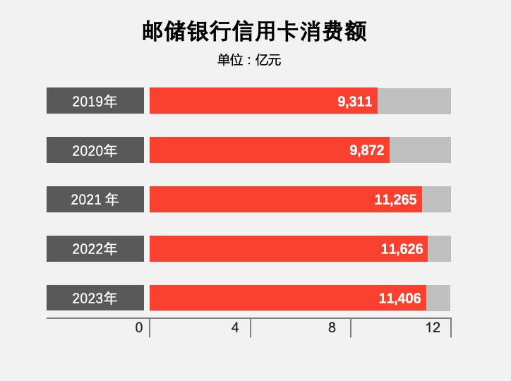 2023年,邮储银行信用卡消费金额 11,405.88亿元;