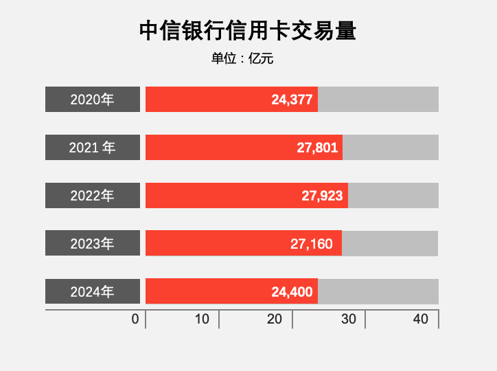 2024年,中信银行信用卡交易量 2.44 万亿元,同比下降10.13%;