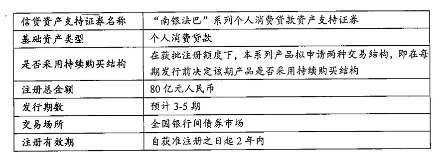 近日,中国债券信息网披露,南银法巴消费金融有限公司拟发起3-5期 “南银法巴”系列个人消费贷款资产支持证券,发行总额度为80亿元,受托机构为交银国际信托有限公司。