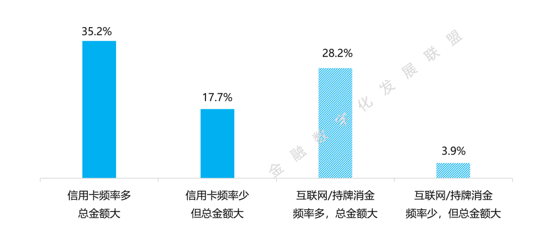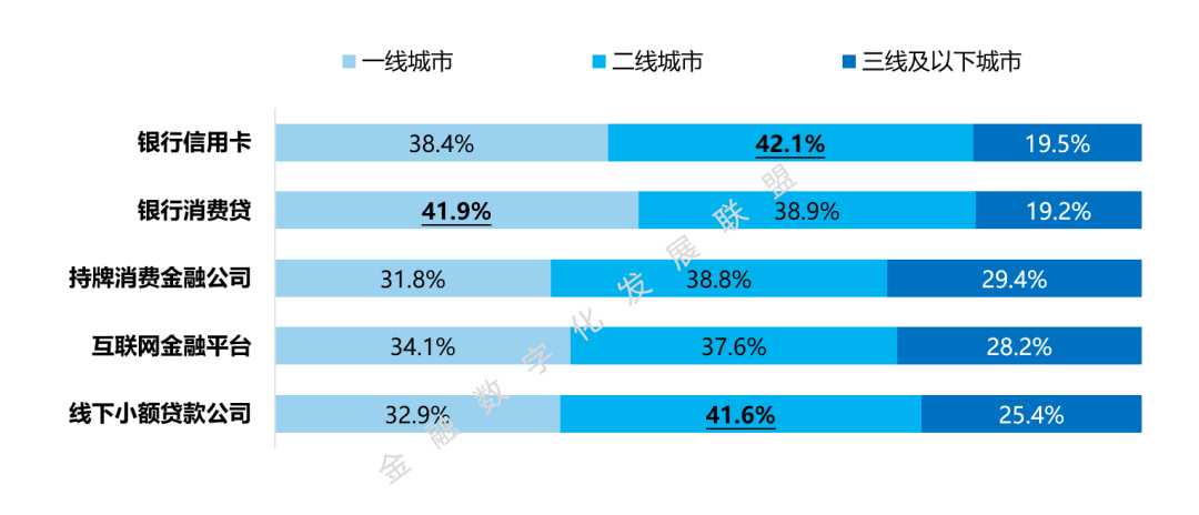 在城市层级维度,信用卡作为信用支付产品,在三线及以下城市的用户占比为35.5%,而现金贷产品和专项消费分期产品这一指标分别为24.8%、23.0%。信用卡专项消费分期产品中,三线及以下城市用户占比30.0%,银行消费贷业务中这一比例为21%。信用卡现金贷业务中,三线及以下城市用户占比为19.5%,依旧高于银行消费贷业务0.3个百分点。在用户认知维度,在信用支付产品上,银行信用卡的认知率与办理率均超80%,常用率为68.7%%,各项比例均显著高于其他机构。但对于现金贷、专项消费分期产品,信用卡的认知率仅为40.3%和31.6%,较银行消费贷分别低41.1和21.7个百分点;办理率分别为20.6%和13.7%,较银行消费贷分别低27.9和10.5个百分点;常用率分别为14.3%和26.1%,较银行消费贷分别低9.2和1.5个百分点。此外,值得关注的是,在通过信用卡办理专项消费分期的用户中,18-25岁客群占比高出消费贷6个百分点,一定程度上表明信用卡得到年轻客群的认可。图5:各类型机构现金贷产品的用户认知率、办理率与常用率图6:各类型专项消费分期产品的用户认知率、办理率与常用率在盈利能力维度,信用卡分期用户的平均年化利率为9.07%;在现金贷业务中,信用卡平均年化利率为7.45%,银行消费贷则为6.37%;在专项消费分期业务中,两者基本一致。信用卡业务的收入来源包括利息与非利息收入。根据上市银行年报中公开的信息,我国上市银行零售业务收益率集中在5%-6%,信用卡的收益率在零售业务中具有显著优势。在非利息收入方面,日常交易所带来的回佣收入可以大体弥补运营成本,在深化客户经营的趋势下,增值服务费、年费等成为银行新的收入增长点,且通常贡献非利息收入的用户资质相对更优,风险较小,业务盈利更为稳健。以上市银行为样本进行统计,2022年,国有大行零售业务收入及利润占全行的比重平均值分别为50%、46%,股份行为44%、36%,城商行仅为24%、27%,农商行为38%、42%,几乎都在50%以下,这表明我国银行零售转型的进程仍在继续,信用卡在提升零售业务收入与利润贡献方面具有重要意义。在用户体验维度,整体满意度上,银行信用卡客户为80.0%,较银行消费贷高出2.3个百分点;在场景丰富度的评价中,信用卡同样居于首位;在用户净推荐值表现上,信用卡为42.0%,银行消费贷则为40.3%。此外,相比非银机构,调研发现,偏好使用信用卡的用户比例(52.9%)较偏好使用互联网金融平台或持牌消费金融公司类信用卡的用户(32.1%)高21个百分点,这说明以信用卡为抓手,实现非银机构消费信贷用户的转化具有现实基础。在获客成本维度,信用卡线上、线下的获客成本约290元、234元,而专项消费金融产品线上、线下的获客成本则约328元、268元,银行信用卡线上、线下获客成本均低于专项消费金融产品。在零售融合经营维度,就办理过银行多个产品的用户来看,60%以上的用户都是在使用了该机构的信用卡之后,又去办理了该机构的现金贷或专项分期产品。当信用卡提供的现金贷的额度或期限无法满足需求时,80.4%的受访用户表示愿意申请发卡行其他现金贷产品。从职业分布方面,信用卡用户中经营者的占比高出银行消费贷5个百分点,而白领的占比则较银行消费贷低5个百分点,同时调研发现,对于办理过现金贷产品的经营者来说,超过半数的经营者出于申请繁琐、材料多、门槛高等原因不愿意申请小微企业贷,这表明如果银行能通过信用卡助力小微业务简化流程、改善体验,则有希望同步提升小微业务的发展空间。图12:不同类型机构用户职业分布-消费金融用户整体信用支付产品是消费金融机构实现客户引入的排头兵。以信用卡、类信用卡为代表的信用支付产品,具有免息期,同时凭借支付功能高频嵌入各类生活场景,用户基数广泛,产品理念容易被接受。因此,对于银行来说,信用卡是引入客户、特别是具有现实或潜在消费信贷资金需求的客户,并实现成长培养的有力抓手。针对银行来看,信用卡相比消费贷业务,其用户中三线及以下城市、经营者等下沉客群的占比明显更高。我国消费金融行业在经历了高速发展后,已步入相对成熟的规范发展阶段,市场竞争加剧,一线城市成熟度较高,各类机构均在探寻下沉市场发展空间。银行消费贷业务目前更聚焦于传统优质客户,如一、二线城市、白领客群,相比而言,信用卡是银行与其他机构抢夺下沉市场的有效载体。信用卡与消费贷的产品功能存在部分重合,不同银行对于两类业务的定位和经营战略也存在差异。2022年7月信用卡新规发布,对于现金分期业务,明确要求不得超过5万、2年,此项规定在一定程度上削弱了信用卡业务现金借贷产品的盈利贡献,引发部分银行关于信用卡和消费贷业务关系的思考。调研发现,66.2%现金贷用户的授信额度不超过5万、97.1%不超过24期。对于符合监管要求的现金类业务以及专项消费分期业务,如通过信用卡开展,好处在于用户侧的体验更佳,无需重复提交申请材料,同时前期获客成本较低,往期用卡数据的沉淀也为银行主动发现借贷需求、进行专项营销促动提供了基础。因此,以信用卡业务作为消费金融服务的主入口可能是更优选择,对于信用卡业务无法满足的需求,可以进一步引流至消费贷业务或是其他零售产品,但此种经营思路需要组织架构提供保障。从目前行业情况来看,多数银行同时设立信用卡部与消贷部门,在这种组织架构下,内部协同效率难免