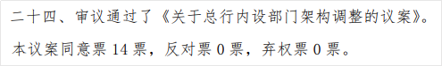 将调整总行内设部门架构,近两年多次调整总行架构