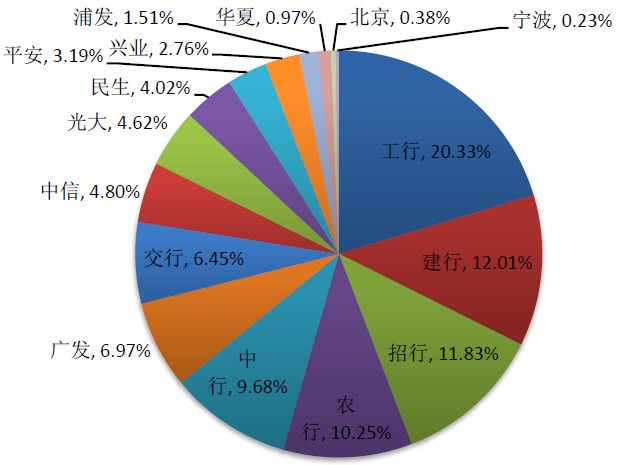 图1 上市银行信用卡截止2013年末市场占比(累计发卡量)